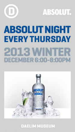 앱솔루트 나이트는 5일부터 매주 목요일 오후 6시부터 8시까지 진행되며, 전시 관람 후 대림미술관 내 D라운지를 찾는 성인 관람객들이라면 누구나 앱솔루트가 제공하는 특별한 칵테일을 즐길 수 있다.