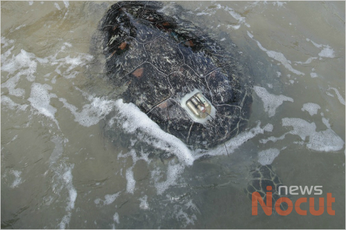 앞서 지난해 6월 경남 거제 이수도에서 정치망에 걸려 동갑이 깨진채로 발견된 동북이는 이후 부산 아쿠아리움에서 1년 4개월 동안 치료를 받은 뒤 방류됐다.