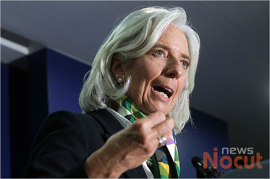 크리스틴 라가르드 IMF(국제통화기금) 총재가 5일 오후 서울 태평로 프레스센터에서 기자회견을 갖고 취재진의 질문에 답하고 있다.