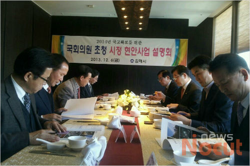 6일 김해시는 서울 여의도에서 간담회를 열고 경전철 MRG 국비 지원, 부전~마산복선전철 신월역 신설, 김해관광유통단지 관련 숙원사업 등 지역현안사항 해결을 위하여 두 지역구 의원의 적극적인 지원을 요청했다.