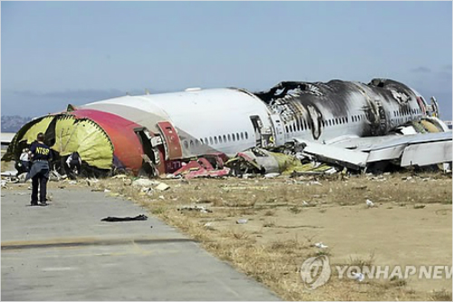 샌프란시스코 국제공항에 착륙 도중 활주로에 충돌한 아시아나항공 OZ 214편 보잉 777기. (AP=연합뉴스)