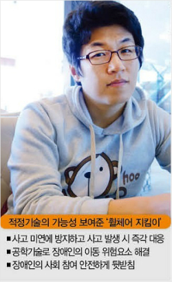2008년 어느날. 대학원에서 의공학을 공부하던 노승우(30)씨는 과제를 받고 깜짝 놀랐다. '장애인의 위치파악을 통한 모니터링 방안을 연구하라'는 다소 낯선 주제였기 때문이다. 간단한 연구가 아니었다. 의공학을 전공했지만 장애인이 이용하는 휠체어는 생소한 분야였다. 그렇다고 물러설 그가 아니었다. 노씨는 IT기술과 생체계측기술에 관심이 많은 청년이었다.