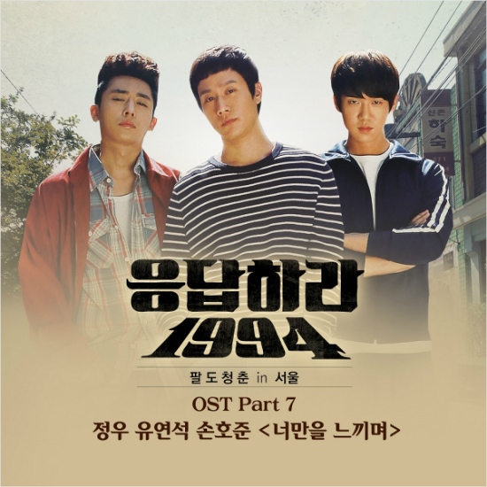 케이블채널 tvN 금토드라마 '응답하라 1994'의 '쓰레기' 정우, '칠봉이', 유연석, '해태' 손호준이 부른 OST '너만을 느끼며'가 정식 음원으로 출시된다.