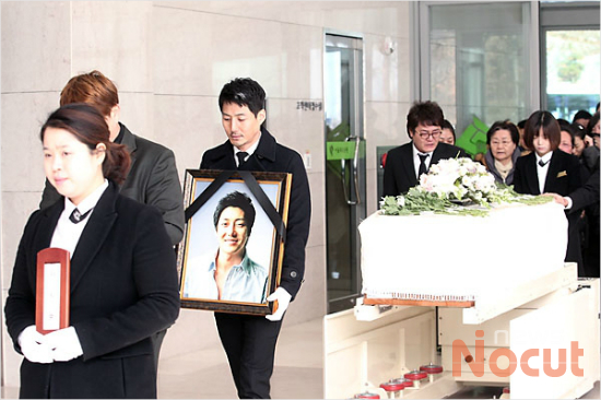 14일 오전 서울 서초동 추모공원에서 그룹 투투와 듀크 출신 가수 고(故) 김지훈 시신이 화장터로 운구되고 있다. 1994년 투투로 데뷔해 '일과 이분의 일', '바람난 여자' 등으로 큰 인기를 모은 김지훈은 지난 12일 서울 중구 한 호텔에서 숨진 채 발견됐다. 경찰은 1년 여간 고인이 우울증을 앓았다는 점을 고려해 우울증으로 인한 자살로 사인을 추정했다.