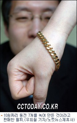 10원짜리 동전 7개를 녹여 만든 것이라고 판매한 팔찌
