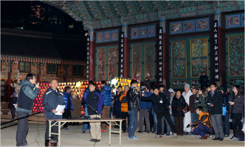 경찰의 체포영장 집행을 피해 은신 중인 박태만 철도노조 수석부위원장이 25일 서울 종로구 견지동 조계사에서 기자회견을 갖고 있다.