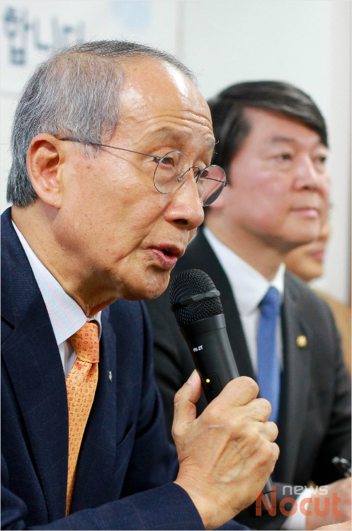 무소속 안철수 의원의 창당준비기구인 새정치추진위의 공동위원장에 임명된 윤여준 전 환경부 장관이 5일 오전 서울 여의도 신동해빌딩 사무실에서 열린 기자회견에서 취재진의 질문에 답하고 있다.