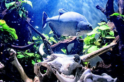 이 물고기는 몸 길이 47cm로 국내 최대 크기며 성격이 난폭해 전용 수조와 전담 아쿠아리스트가 준비된다. 블랙 피라냐는 아마존강과 페루강 유역에서 서식하며, 자기 몸의 30배에 달하는 무는 힘을 가지고 있다.