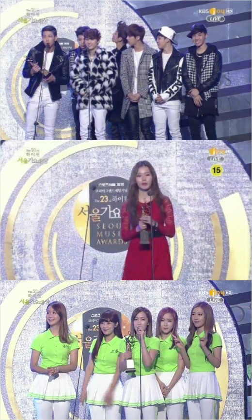 23일 서울시 송파구 잠실실내체육관에서 제23회 하이원 서울가요대상이 개최됐다. 이날 신인상 수상자로 방탄소년단, 김예림, 크레용팝이 호명됐다.