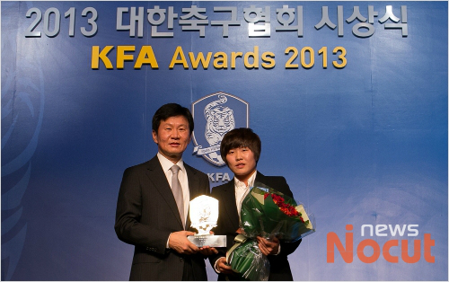 24일 오후 서울 방이동 올림픽파크텔에서 열린 '2013 대한축구협회 시상식'에서 지소연이 여자부 올해의 선수상을 수상하고 있다 (사진 = 노컷뉴스 송은석 기자 raphacondor@cbs.co.kr)