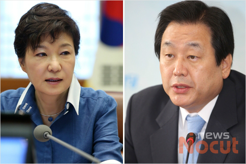 새누리당 친박의 상징인 박근혜 대통령과 김무성 의원. 자료사진