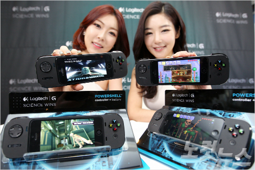 11일 오전 서울 종로 마이크임택트에서 열린 PC 주변기기 전문업체 로지텍 코리아 신제품 발표회에서 모델들이 아이폰 5, 5S 전용 게임 컨트롤러 '파워쉘'을 선보이고 있다.