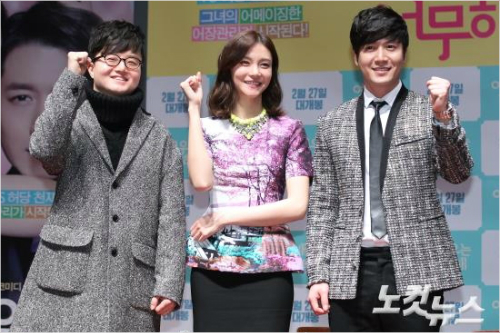 영화 '여배우는 너무해' 언론시사회가 24일 오후 서울 자양동 롯데시네마 건대점에서 열린 가운데 왼쪽부터 유정환 감독과 배우 차예련 조현재기 포토타임을 갖고 있다. (노컷뉴스 이명진 기자)