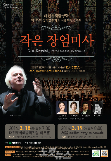 대한민국 합창의 역사를 새롭게 써가는 대전시립합창단과 빈프리트 톨(예술감독)이 스위스 메뉴힌페스티벌 초청연주를 앞두고 선보이는 레퍼토리 ‘로시니 작은 장엄 미사’. 소프라노 강혜정, 알토 양송미, 테너 이원준, 베이스 강형규의 협연으로 3월18일(화) 저녁 7시30분 대전문화예술의전당 아트홀, 3월19일(수) 저녁 8시 서울 예술의전당 콘서트홀에서 연주된다.