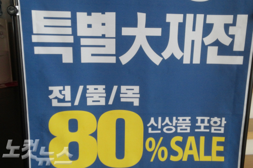 지갑에서부터 양복, 스포츠의류, 모피, 아웃도어 제품들이 진열된 매장에는 '신상품을 포함해 전 품목 50%~90% 대할인'이라고 적혀 있는 화려한 현수막이 곳곳에 걸려 있어 여느 '창고 비우기 할인행사'나 별 차이가 없어 보였다.