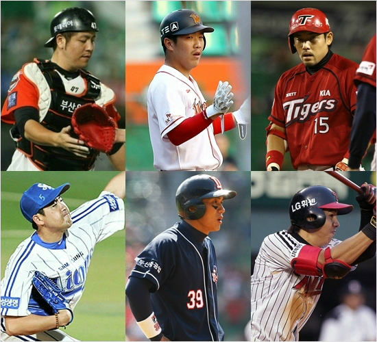 올 시즌 프로야구 1, 2군 전체 선수 평균 연봉이 사상 첫 1억 원을 돌파했다. 사진은 연봉 상승을 주도한 FA 대어들. 사진은 왼쪽 위부터 시계 방향으로 롯데 강민호, 한화 정근우, 이용규, KIA 이대형, NC 이종욱, 삼성 장원삼.(자료사진)