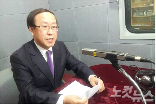 강원도교육감 선거에 나선 김선배 전 춘천교대 총장. 춘천cbs에 출연해 공약을 설명하고 있다.