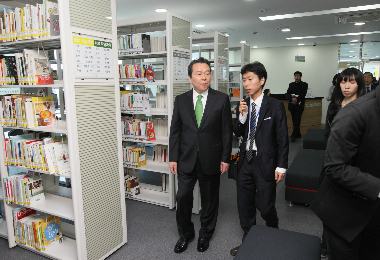 노현송 강서구청장(사진 맨 왼쪽)이 곰달래도서관을 둘러보고 있다. 사진제공=강서구