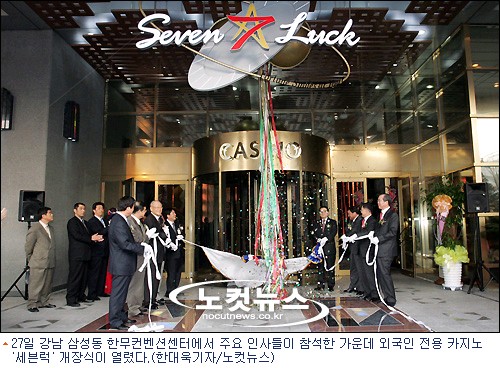 강남구 삼성동 한무컨벤션센터 별관에서 이날 오후 5시 임병수 문화관광부 차관보와 김종민 한국관광공사 사장 등 주요 인사 10여명이 참석한 가운데 개장식을 갖고 본격적인 영업을 시작했다. 세븐럭은 859평(2층)의 영업 전용면적에 슬롯머신 130대와 게임테이블 45대(바카라 24, 블랙잭 13, 룰렛 4, 포커 2, 다이사이 1, 빅휠 1)를 갖춘 국내 최대 규모. 식당과 바를 비롯해 각종 편의시설도 마련돼 있으며, 현재 국내에 허가된 16개 외국인 전용 카지노 중 가장 크다.