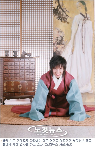 먼저 영화 ''왕의 남자''와 SBS 수목극''마이걸''을 통해 올해 최고의 기대주로 떠오른 이준기는 노컷뉴스 독자들에게 "지난해 보내주신 뜨거운 사랑에 감사드린다"면서 "앞으로도 우쭐대지 않고 열심히 노력하는 배우로서 여러분에게 인정받고 싶다"고 말했다.