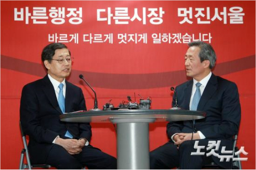 반면, 이들은 야권의 박원순 서울시장에 대해선 연합전선을 구축하고 있다. 야권을 향한 공격 시에는 주저하지 않고 서로 지원사격을 해주고 있는 것. 각개 전투로 박 시장을 이기기 어렵기 때문에 여권에선 '협공'카드에 주력하는 모양새다.