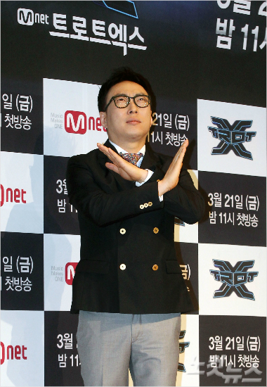 박명수가 18일 오후 서울 강남구 파티오나인에서 열린 'Mnet 트로트엑스' 제작발표회에서 포즈를 취하고 있다. 윤성호기자