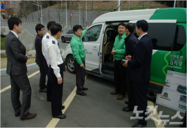 도로교통공단 부산지부 관계자들이 교통안전점검차량 (TSCV/Traffic Safety Checking Vehicle)을 몰고 황령터널 전포 방면 2차로로 진입한다.