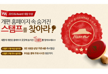 홈페이지에 숨겨진 총 7개의 스탬프를 찾으면 추첨을 통해 피자헛 프리미엄 피자 무료 시식권을 선물로 증정한다.