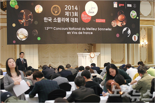27일 오전 서울 논현동 임페리얼 팰리스 호텔 셀리나홀에서 열린 프랑스 농식품 수산부(MAAF)가 주최하고 소펙사 코리아(SOPEXA KOREA)가 주관하는 '제13회 한국 소믈리에 대회 1차 예선'에 참가한 참가자들이 블라인드 테이스팅을 하고 있다.