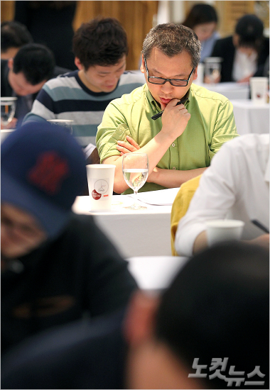 27일 오전 서울 논현동 임페리얼 팰리스 호텔 셀리나홀에서 열린 프랑스 농식품 수산부(MAAF)가 주최하고 소펙사 코리아(SOPEXA KOREA)가 주관하는 '제13회 한국 소믈리에 대회 1차 예선'에 참가한 참가자들이 블라인드 테이스팅을 하고 있다.