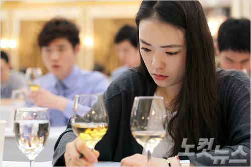 27일 오전 서울 논현동 임페리얼 팰리스 호텔 셀리나홀에서 열린 프랑스 농식품 수산부(MAAF)가 주최하고 소펙사 코리아(SOPEXA KOREA)가 주관하는 '제13회 한국 소믈리에 대회 1차 예선'에 참가한 참가자들이 블라인드 테이스팅을 하고 있다.