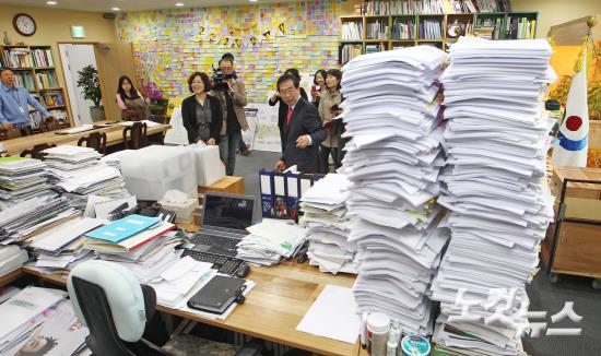 서울특별시장실, 산더미 만한 자료가 '한가득'
