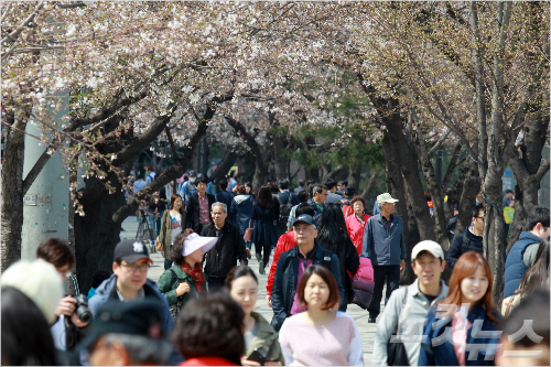 평년보다 높은 기온으로 인해 서울의 벚꽃이 2주 정도 앞당겨 개화한 가운데 30일 여의도에 벚꽃을 비롯한 봄을 알리는 화사한 꽃들이 보기위해 시민들이 거리를 거닐고 있다. 윤창원기자