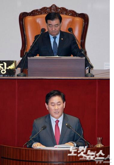 새누리당 최경환 원내대표가 1일 오전 국회 본회의에서 교섭단체대표연설을 하고 있다. 사진=윤창원 기자