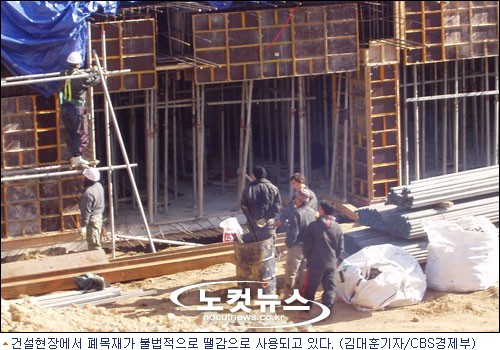 건설현장서 발견된 페목재 대형화물차로 옮겨져 ''불법'' 땔감으로 쓰여하지만 이 모든 것이 불법인데 건설업체에서 불법인 사실조차 전혀 모르고 있다.