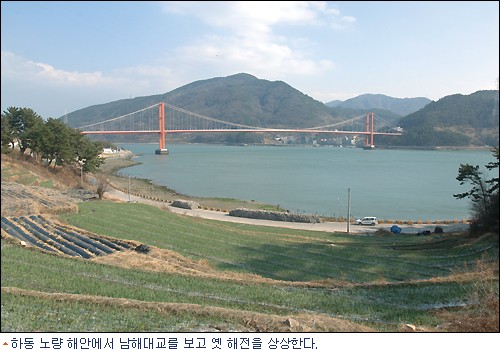 하동 노량 해안에서 남해대교를 보고 옛 해전을 상상한다.