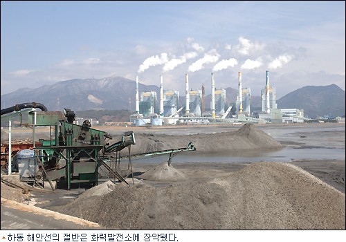 하동 해안선의 절반은 화력발전소에 장악됐다.