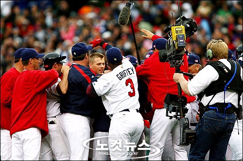 9회말 역전승 거둔 미국 선수들, ''이맛이야''