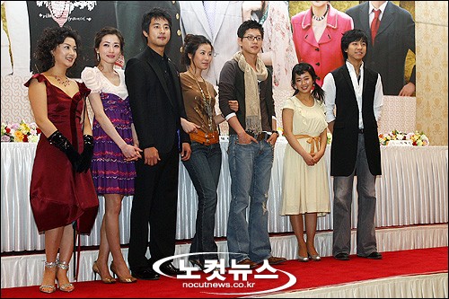 28일 오후 서울 남산 힐튼호텔에서 열린 KBS 주말연속극 ''소문난 칠공주''(극본 문영남, 연출 배경수) 기자시사회에서 출연배우들이 무대에 올라 포즈를 취하고 있다.