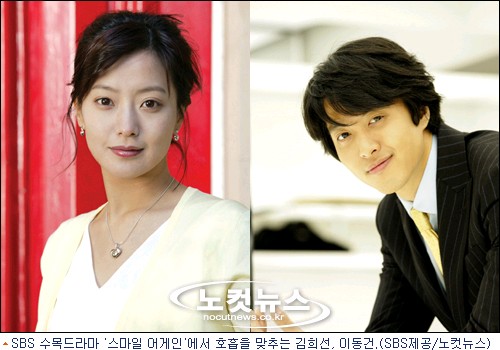 두 사람은 다음달 17일 첫방송하는 SBS 수목드라마 ''스마일 어게인(윤성희 극본, 홍성창 연출)''에서 연인으로 호흡을 맞춘다. 지난해 같은 날, 동 시간대 방송된 드라마 ''슬픈연가(김희선)''과 ''유리화(이동건)''로 경쟁을 펼치더니 안방극장 복귀작으로 같은 드라마를 택했다.