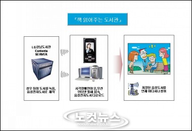 이처럼 LG의''''책 읽어주는 도서관''''은 시공간의 제약을 극복하고 정보를 주고받을 수 있는 유비쿼터스 기술을 이용해 시각장애인이 도서관을 쉽게 이용할 수 있도록 한 세계 최초의 서비스로 국내외 도서관 및 장애인단체로부터 높은 평가를 받고 있다.