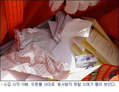 수집 시작 10분^ 우편물 사이로 '용서받지 못할 쓰레기'들이 보인다