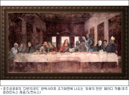 호주성공회의 이 반박 사이트는 레오나르도 다 빈치의 작품 ''최후의 만찬''에 나오는 제자들을 오드리 토투 등 영화 관련 인물 등으로 대치하고 예수가 소설을 보다가 두 눈을 한번 치켜 뜨는 플래시 패러디 작품으로 초기 화면을 장식해 눈길을 끌고 있다.