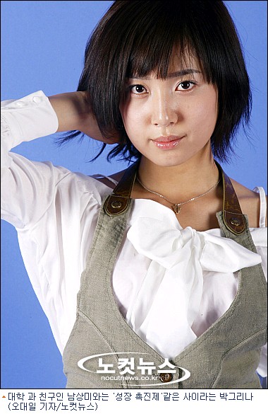 여성스러움을 물씬 풍기는 이미지와는 달리 박 그리나(21)는 실제로 씩씩함이 더 묻어난다 ''아침에 일어나 거울에 비친 구레나룻이 진한 자신의 얼굴 옆모습을 보며''그놈 참 잘 생겼다''고 하는 스스로의 자평은 박 그리나가 가진 평소 모습의 한 단면이다.