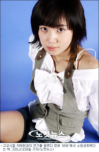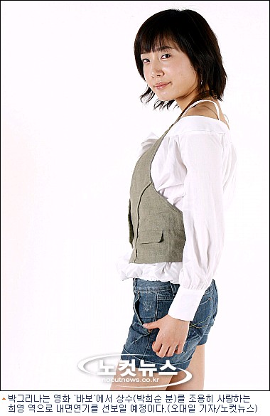 집에서는 오빠가 있음에도 아들 취급(?)을 받을 만큼 듬직함(?)을 갖고 있는 박그리나, 지난해 ''연애의 목적''에서 박해일의 물리고 물려 권태기에 이른 여자친구 희정 역으로 관객에세 얼굴을 알린 박그리나가 이번에는 강풀의 인터넷 만화로 선풍적인 인기를 모았던 ''바보''에서 상수(박희순 분)를 사랑하는 희영 역으로 도전장을 내밀고 있다.