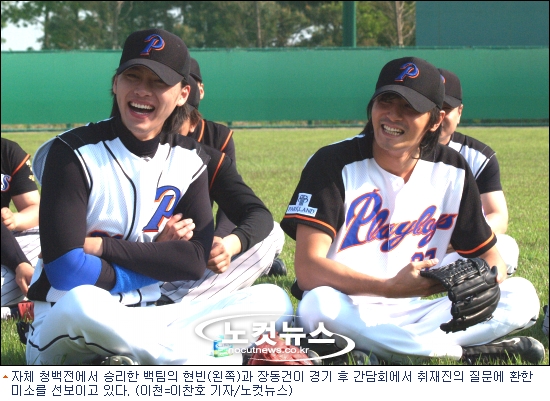 지난해부터 영화배우들과 영화관계자들이 모여 야구경기를 통해 친목을 다지고 있는 야구팀 플레이보이스의 미디어데이를 맞아 진행된 이날 자체 청백전은 장동건의 백팀이 황정민과 김승우, 지진희, 공유 등이 포진한 청팀을 13대 10으로 눌렀다.