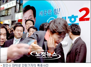 최인수 인턴기자의 활약상은 한나라당측에서 제공한 피습 동영상에도 나와있다. 수많은 인파들 틈에서 연단 앞에 자리를 잡은 뒤 사건이 터지자 박대표와 피습 용의자를 놓치지 않고 연신 카메라 셔터를 눌러댔다. 인파들 속에 일반인들의 디카와 사진기자들이 있었지만 이미 ''순간''은 최인수 인턴기자의 카메라에만 담겼다.