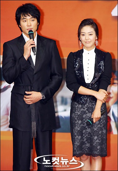 오는 2일 85회로 종영하는 SBS 주말드라마 ''하늘이시여''(연출 이영희 · 극본 임성한)에서 남녀주인공으로 열연한 이태곤(왼쪽)과 윤정희가 23일 오후 서울 여의도 63빌딩 코스모스홀에서 열린 종방연에서 드라마를 마치는 소회를 밝히고 있다.