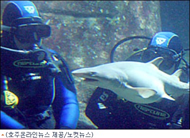 호주 시드니 맨리에 위치한 해양 테마공원 오션월드는 지난달 29일 이곳 수족관에 살고 있는 그레이 너스 샤크 암컷 1마리가 수컷 새끼를 낳았다고 발표했다.