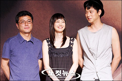 8일 오후 조선호텔에서 열린 영화 ''우리들의 행복한 시간'' 제작발표회에서 감독과 주연배우들이 포토타임을 갖고 있다.(왼쪽부터) 송해성 감독, 이나영, 강동원.